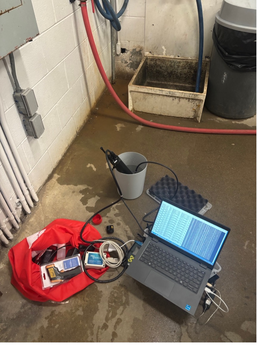 Figures 3 and 4. Measuring dissolved CO2 levels in ice resurfacing water using the Pro-Oceanus Mini CO2 sensor at the Hespeler Memorial Arena in Cambridge, Ontario.
